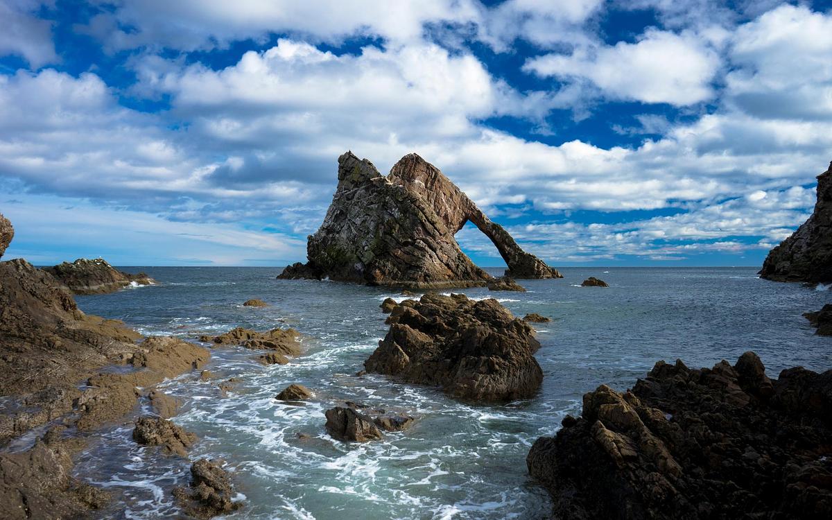 20 minutes’ drive west is the Glenglassaugh Distillery, just east of Portsoy. If the weather’s fine, and even if it’s not, a short drive west along the coast to Bow Fiddle Rock is sure to impress anyone with a love of good views and sea birds. The Rock sits at Portknockie in the Moray Firth and its neighbouring rocks are climbable if you wish, or walk along the beach to watch the sunset and experience all the romance of Scotland.